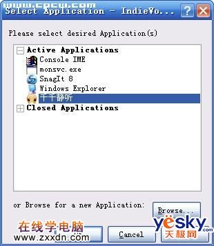 第二步:如果想添加已经启动的出声程序(Active Applications),选中IndieVolume主界面的“Active Applications”,单击“Add”按钮,然后就选中你系统中的能够“出声”的程序,如WMP、、QQ、器等等(如图2),在图1所示的界面中,最后单击“OK”按钮即可。