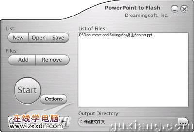 在PPF的主界面上点击“ADD(加载)”键,在出现的浏览框里选择需要制作的幻灯片文件(PPT、PPS格式)。选择结束后会在软件的“List of files”下出现所选文件列表,这时如果有不满意的可以通过点击“Remove(移除)”键进行删除。