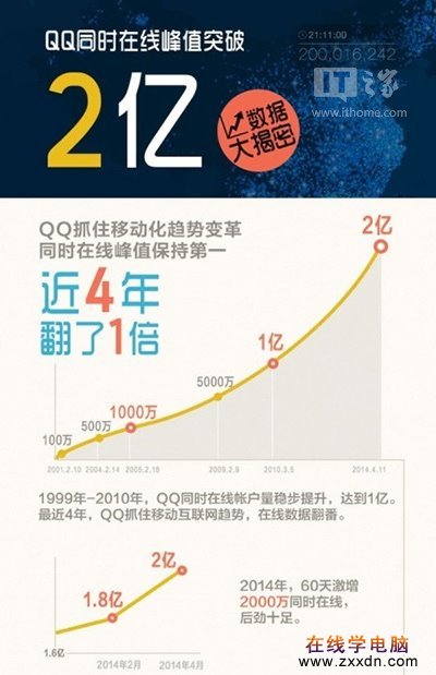 在线学电脑(www.zxxdn.com):腾讯揭秘2亿同时在线:今天,你上QQ了吗?