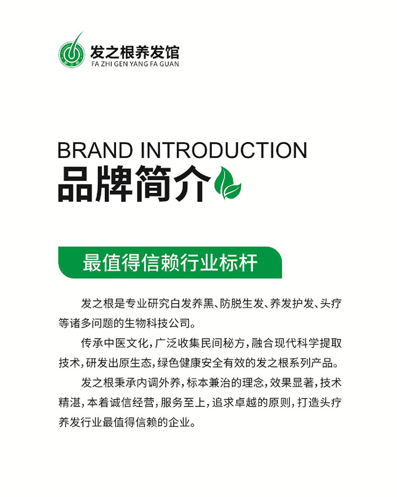 发之根始终秉承“三分治七分养”的自然理疗方法。短短几年走来,发之根凭借安全专业的技术、完善的服务、顾客朋友的口碑相传,迅速成长为一个享誉业内的知名品牌,尤其在防脱生发、白发养黑领域更是独树一帜!迄今已为19375例白发、脱发顾客提供养护理疗服务。在后续跟踪报告中发现,90%的患者在理疗后白发状况得到根本改善并逐渐转黑。广大顾客的良好回馈和好评更坚定了发之根发展壮大的信心。到目前为止,发之根已在国内大中城市发展连锁店逾百家,并将陆续覆盖二三线城市,以期为更多顾客提供来自发之根的养发护发服务。