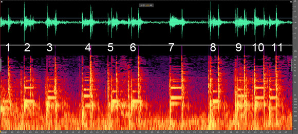 注:1、因为音频的质量,开头的数字1无法从频谱图中得出,但是地球人都知道中国大陆手机号开头是1;