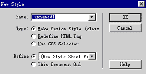 Type:样式表类型,共有三种,它们是:自定义(Make Custom Style),重新定义 HTML 标记(Redefine HTML Tag),使用 CSS 选择器(Using CSS Selector)。