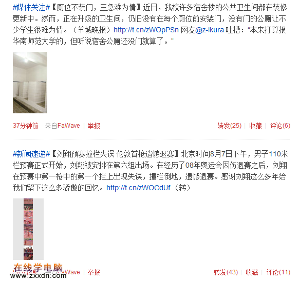 举例:@华师头条 每天都会不间断地发布新闻,而@ISCNU 则是在中午、晚上的上网高峰期对其转发量较高的微博进行转发,推送优质信息,精选华师资讯。